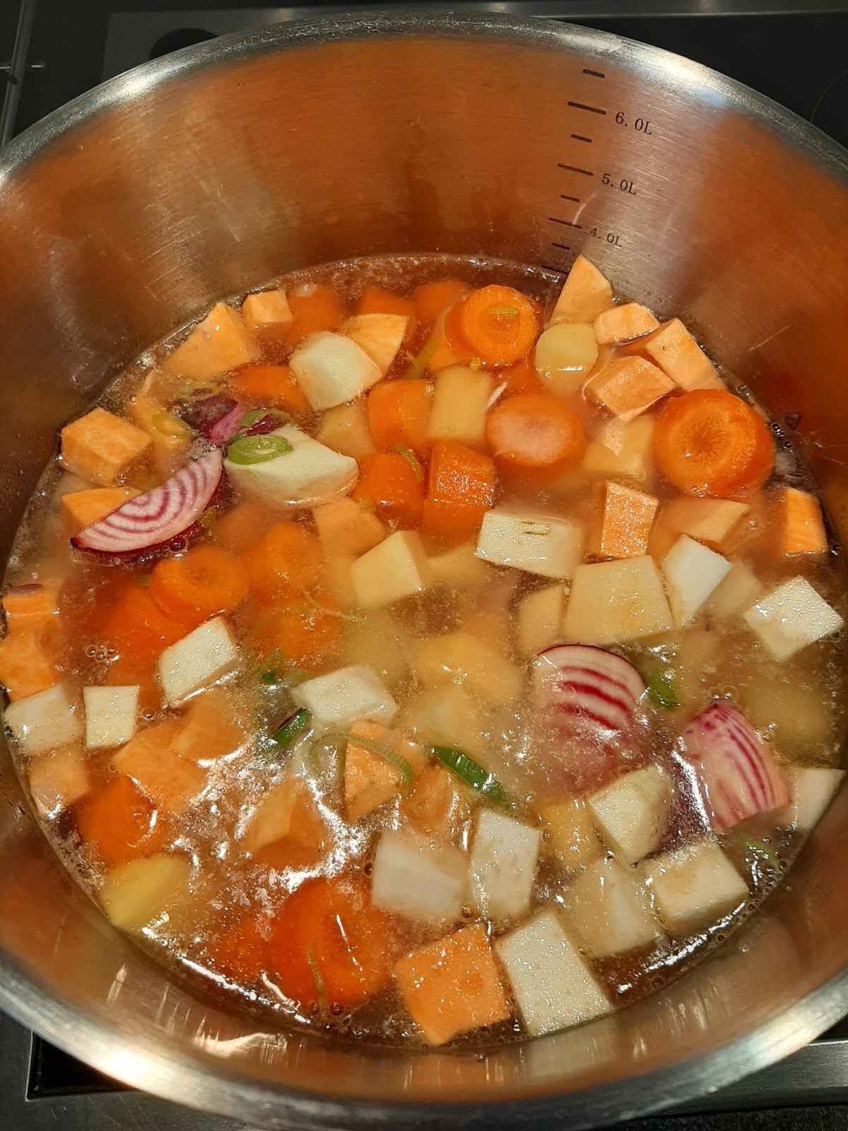 1 pkt (750 g) peruna&keittokasviksia (pakaste)